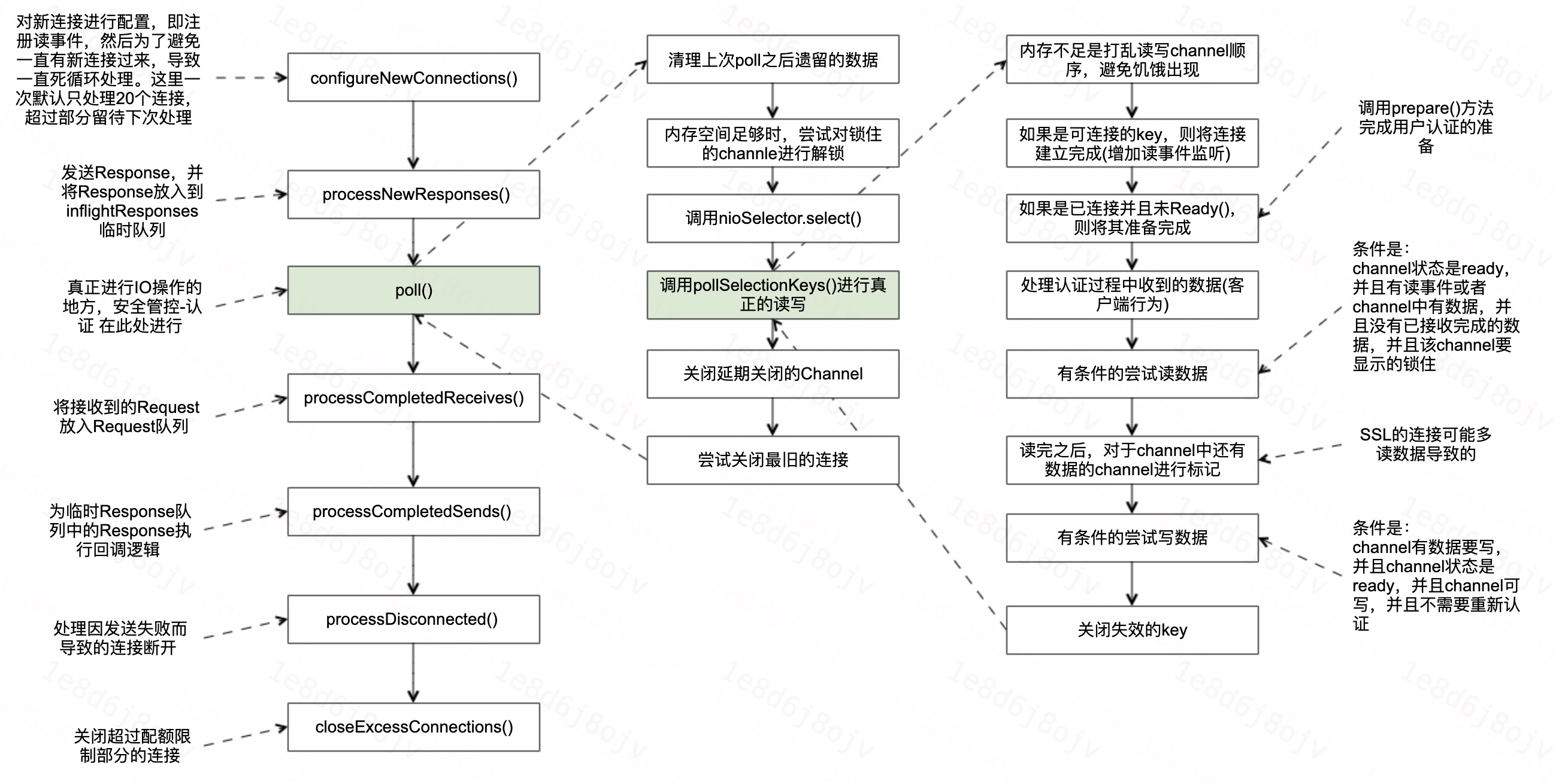 因为这块是真正进行网络IO的地方,同时还涵盖了安全认证等等功能的穿插,代码比较的繁杂,相关文章或者书籍基本讲到这个地方就跳过了。